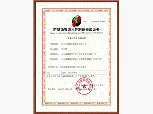 山東東興揚(淄博五環)防腐設備有限公司是專業的鋼襯玻璃廠家,鋼襯玻璃,鋼襯玻璃管道等產品使用壽命長,造價低,集開發、設計、生產、經營于一體的專業性的工業防腐單位,被評選為中國 工業防腐蝕技術協會會員企業單位。